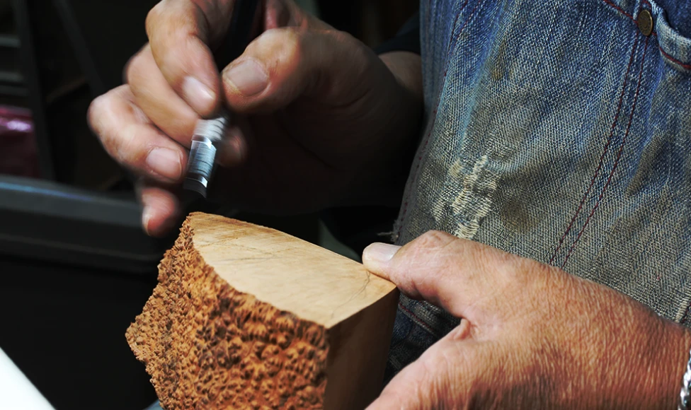 匠の技が活きているのがダブルオーワークスのパイプです。切る、削る、磨く。ひとつ一つの工程が職人が持つ技、経験が込められています。