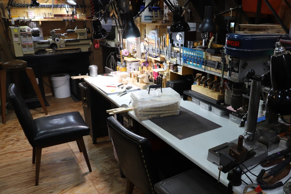 OoWork's工房は、愛知県豊川市にある遊び心満載の工房です。パイプに限らず色々なアイテムを生み出していきます。そのアイテムは真面目なものから遊びのものまで多岐にわたります。でも共通しているのはどのアイテムも真剣に拘っていることです。よりいいものを作り上げるためには無いツールは作る、欲しいツールは作るそんな拘りを持ち世界に一つだけのもの(オンリーワン)を作り出す工房です。